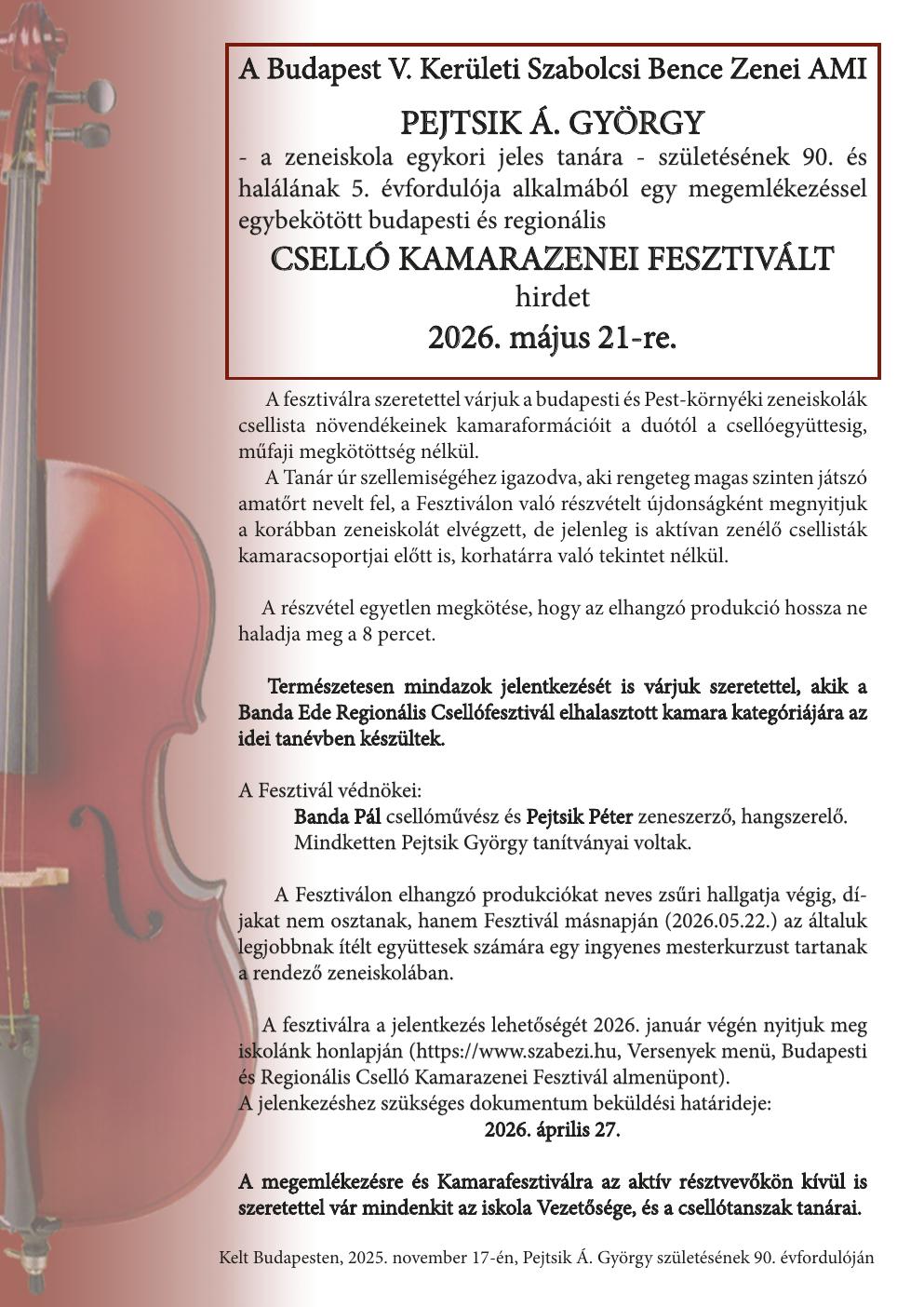 Cselló Kamarazenei Fesztivál Pejtsik Á. György emlékére