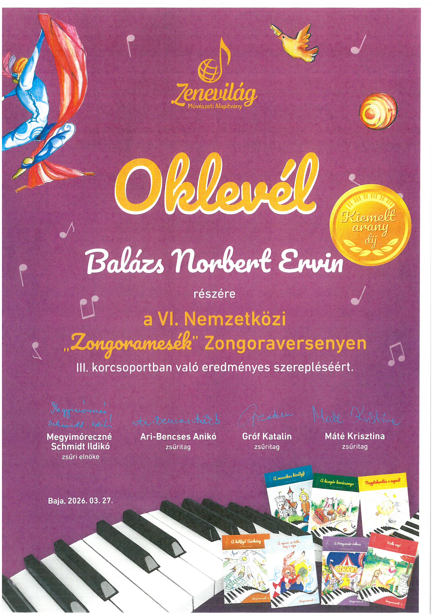 VI. Nemzetközi "Zongoramesék" Zongoraverseny